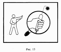 4. Произвести правой рукой вдоль оси ракеты резкий рывок вытяжного шнура на себя (рис. 13).