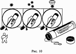 Сейчас вместо парашютных ракет иногда используются небольшие патроны-мортирки, запускаемые с помощью специального механизма, размерами чуть больше авторучки и, кстати, имеющего вид авторучки. При выстреле мортирка, взрываясь на высоте 50 – 80 м, образует яркую звездочку, которая горит в небе примерно 5 с и может быть замечена на расстоянии до 7 – 10 км (рис. 14).