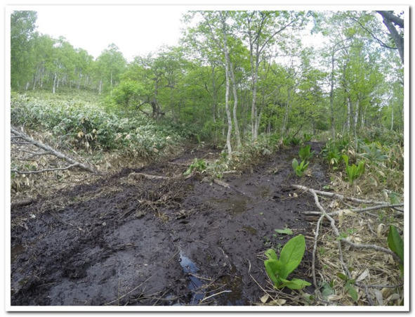 Но то все было затравкой. Начались мои кошмары. Мощные водные пути перерубали дорогу как мечом. Дорога ухала вниз под углом 70 градусов, я не шучу, затем вылезала под тем же углом. И все это по мокрой жиже. Стало понятно, что мне нужно будет сначала перенести свой велосипед с грузом на багажнике, затем вернутся за Ингиным. Скажу кратко, задолбался, итого таких приключений с переноской набралось больше 20. Только моя природная ловкость и сила не позволили хряпнуться на скользкой дорожке в 70 градусов.