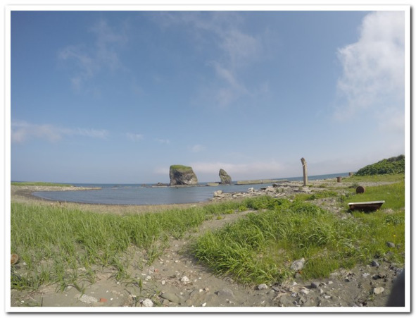 Ветер с моря выдул всех комаров обратно в их таежную берлогу, вокруг было открытое пространство где не было нужды орать на каждый куст с целью изгнать оттуда потенциального медведя. Трудности таежного периода остались позади, перед нами был ковш мыса Анастасии. Вокруг во множестве преобладали антропогенные следы, по всему когда-то человек здесь деятельно развернулся. Особенно преуспели японцы. Используя эти две скалы в качестве волноотбойников, они за их широкими спинами соорудили ковш для маломерок, настроили бетонных ванн для заготовки рыбы.