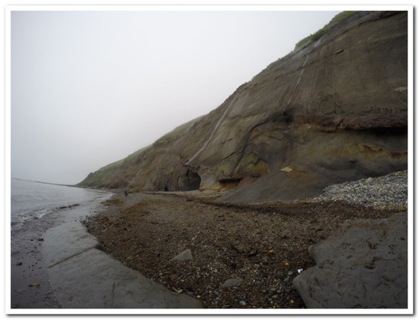 Начало дня подарило первый километр пляжа, только позже мы поняли, как это важно, когда пляж. Сразу за этим коротким песчано-гравийным началась небольшая, тестовая гряда скал. Тестировались наши силы и нервы, если кто не понял. Сразу за короткой скалистой местностью побежала удобная для катания велосипедов местность, относительно, конечно удобная, вы же понимаете, велосипедных дорожек там нет. Наволокло тумана, солнце этим летом ставилось в большой дефицит, хорошо что мы об этом не догадывались, а всегда надеялись что вот вот начнется и засветит.