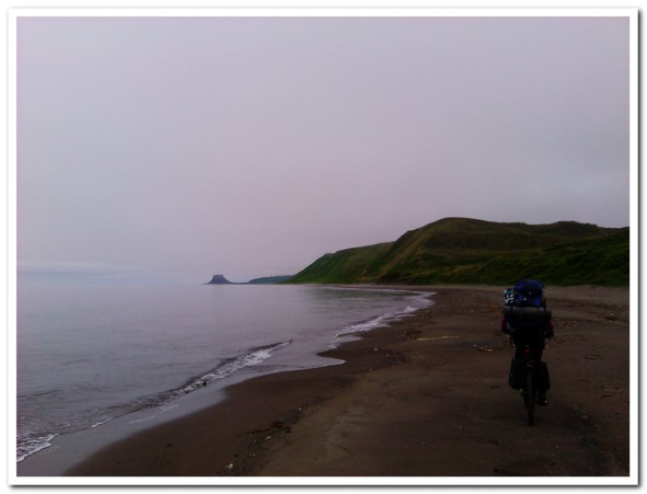 Благодаря дождю нам посчастливилось познакомиться с жизнью этого интереснейшего места – Кордона на мысе Кузнецова. И нет печали, что задержались. Дождь тем временем припустил так, что кайф от пребывания под крышей, где хрустел костер в печке, запределил до тех самых небес, откуда шел этот дождь. Пришлось, правда, набраться мужества и выйти туда где не было печки, а лишь прохладная вода из облаков. Требовалось и велосипеды намыть, с трудом различимые за грудами облепившей их грязи.