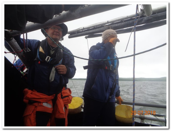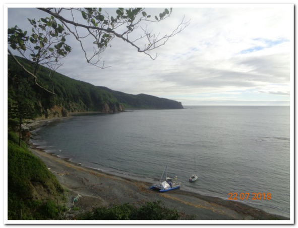 Полоса тумана была рядом, а бухта открыто и чисто подставила себя под низкое небо из которого вылетал обильный дождь, но нам до него дела не было. Были мы в сухости сарая, где готовилась еда и была готова праздничная выпивка разных сортов и градусов. Святой закон, требовалось отметить первый безопасный день плавания. Даже голосовать не пришлось.