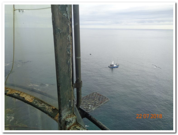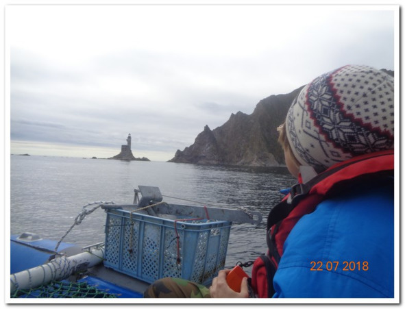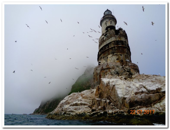 Когда между перекусами показался маяк Анива, все забыли даже о следующем перекусе и перетяжеля нос судна, с него лучше был виден маяк, с нетерпением впились в него взглядами. Далеко не всем пришлось оставить отпечаток своего следа на его камнях. И нетерпение приобщиться к избранным, кто уже побывал там, прорывалось в разговорах и обсуждениях. Слава попробовал немного спустить народ на землю приказом собрать весь мусор на маяке, какой попадется в поле зрения, но народ был готов к этому испытанию и не потерял задор.