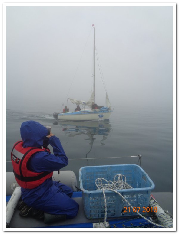 Медленно подходим в дым, по научному в туман. Раздаются крики что скоро и лицо в зеркало не увидишь… Боязливо, все же из морских волков на борту только Слава, а остальные может и плавать не умеют.