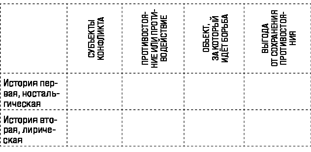 Пожалуй, пришло время вернуться к историям, описанным в начале главы. Ещё не забыли пенсионерку с документами и двух ночных парковщиков? Посмотрите на эти кейсы глазами человека, который знает о конфликтах немного больше. Проверьте их на наличие четырёх признаков конфликта. Для наглядности заполните таблицу ниже, а затем возвращайтесь к чтению.