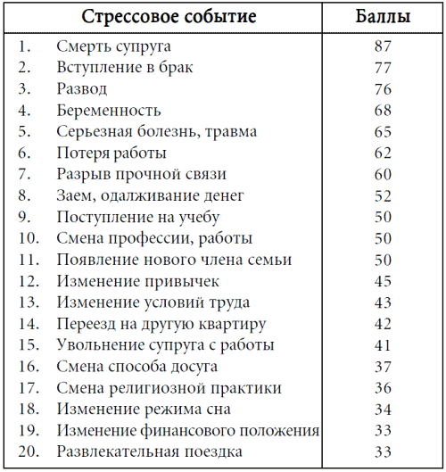 Американцы давно рассчитывают силу стрессового (психотравмирующего) события в условных единицах, которые получили название «единиц жизненных перемен», т. е. речь идет о степени нарушения поведенческих стереотипов. Согласно этой классификации, брак или принятие предложения оценивается – в 77 баллов «стресса», а развод – всего 76. Разве это не удивительно? Не странно ли, что вступление в брак рассматривается учеными как больший стресс, нежели развод? Ориентируясь на свой обыденный опыт, мы думаем, что развод, конечно, хуже брака, но на деле вступление в брак – для психики, следующей своим динамическим стереотипам, – это настоящая катастрофа!