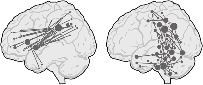 В «высококреативных мозгах», то есть у испытуемых, которые продемонстрировали высокий уровень достижений в различных областях, из 25 самых активных участков мозга половина находилась, что вполне объяснимо, в дефолт-системе мозга, а вторая существенная часть в двух других базовых сетях – сети выявления значимости и центральной исполнительной сети.