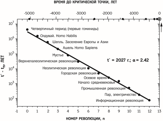 В этой книге он описал восемь последовательных фаз человеческой истории. Рассматривая фундаментальные закономерности трансформации культуры, общества и технологий и отчётливо наблюдая ускорение фазовых переходов от одной модели к другой, Игорь Михайлович предсказывает момент «конца истории» – 2027 год (см. рис. № 16).
