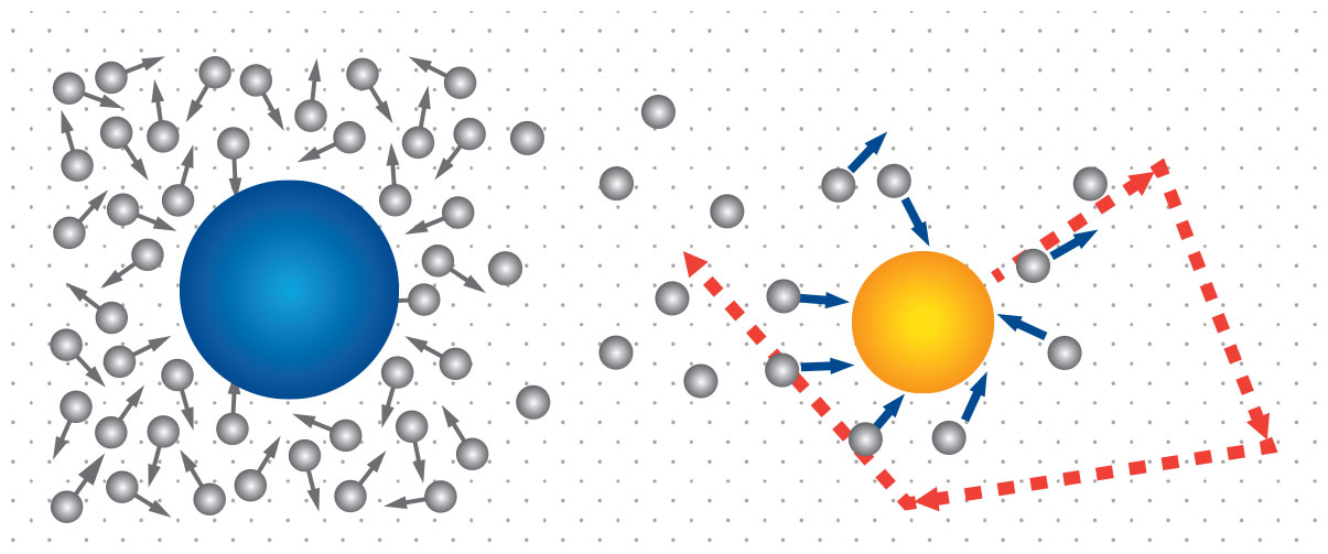 Эти атомы и молекулы слишком малы, чтобы мы могли увидеть их, мы видим лишь их совокупное воздействие на броуновское тело. И у нас возникает иллюзия, что «тело» Броуна движется само по себе, по своей собственной воле. Хотя, конечно, никакой воли и способности к собственному движению у него нет.