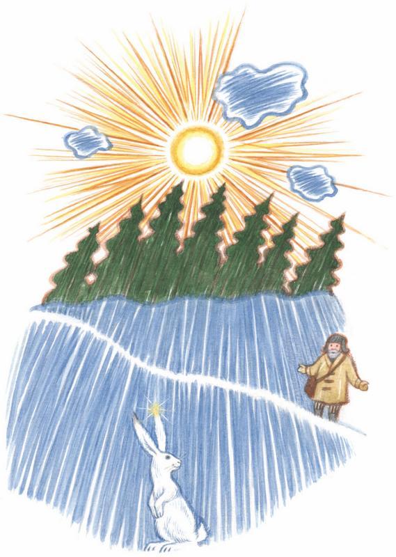 – Так я всё-таки заяц-беляк. Летом мы действительно серые и рыжие, а зимой – хм-м – становимся белыми, как видишь, – пояснил заяц очевидную истину, о которой нетрудно было и самому догадаться. И я, конечно, догадался бы, не стань для меня встреча с Золотым Ушком таким сюрпризом.