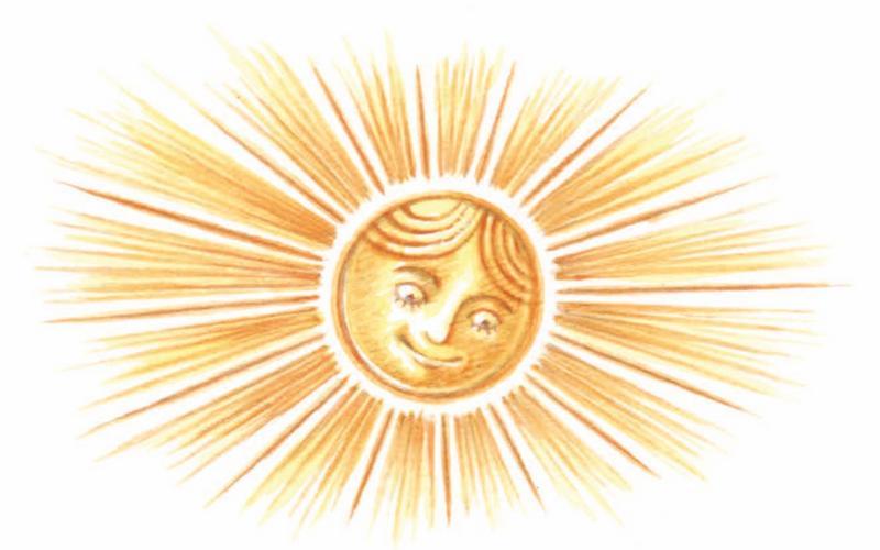 В самом деле, можно ли взгляд отвести от такой красы, от неба голубого, почти синего. Словно огромный купол вознёсся и над полянкой, и над деревьями вокруг неё, и надо всем лесом. И висит в этом небе золотой шар огненный, сияющий, яркий-яркий, смотреть невозможно, глаза сами прищуриваются. И от этого сияния по всему небу будто золотые искры вспыхивают и гаснут, вспыхивают и гаснут.