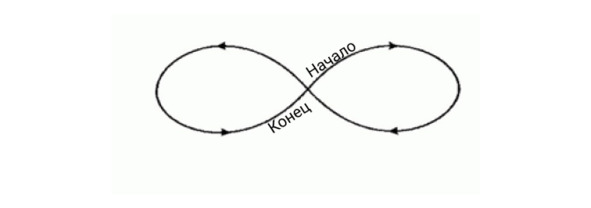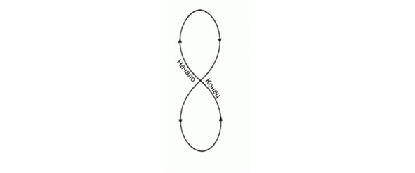 Из центра обращения сделать вертикальную восьмёрку, начиная по часовой стрелке вверх.