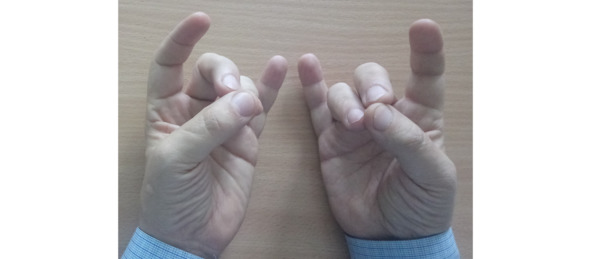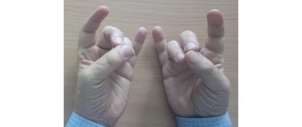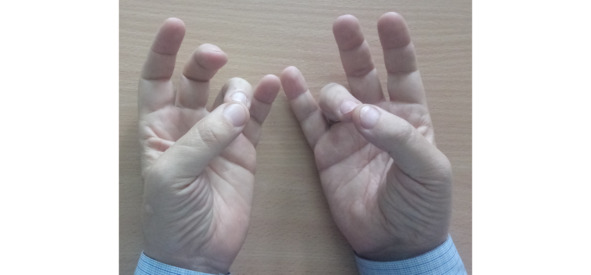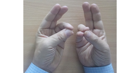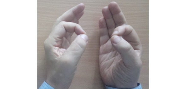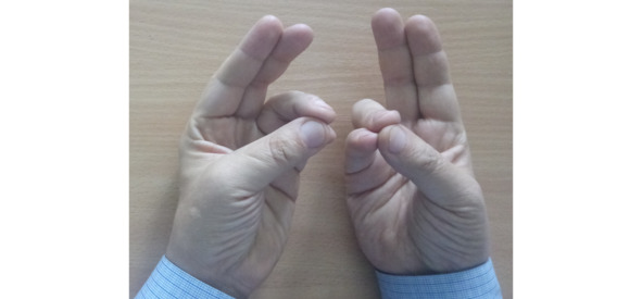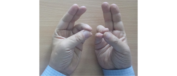 Способ выполнения РАДЫ: безымянный и большой пальцы соединяются подушечками. Оставшиеся пальцы расслаблены и слегка согнуты. РАДА выполняется обеими руками.