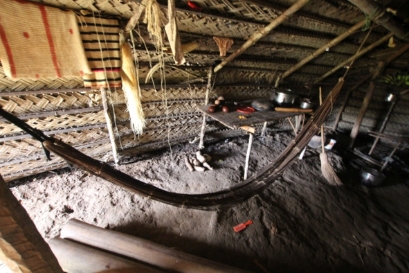 Внутри малоки царит полумрак, но если днем долго находишься внутри коммунального общинного жилища, глаза быстро привыкают к тусклому освещению и вскоре можно видеть, что происходит в интерьере, не используя фонарик или другую дополнительную подсветку.