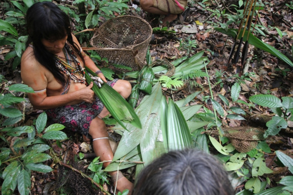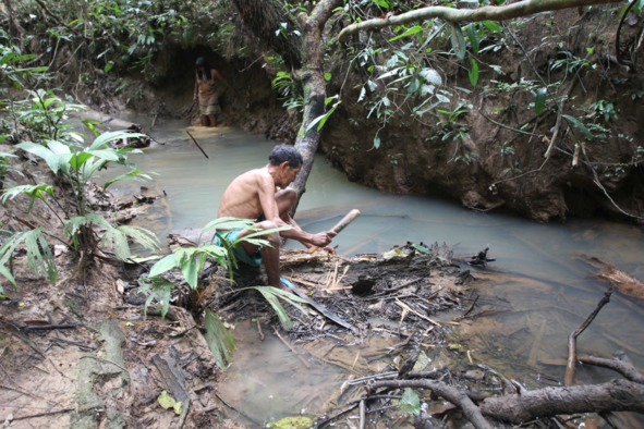 Выше по течению, в нескольких метрах от Туми (Сегундо), две женщины зашли в воду и стали активно сбивать илистое дно ручья ногами, целенаправленно поднимая клубы мути. Очевидно, это требовалось для эффективности использования яда, действие которого было основано на его способности выбирать кислород из воды, отчего рыба начинает задыхаться и одурманенная всплывает к поверхности воды, теряя способность активно двигаться. После осуществления этих действий первые жертвы – маленькие рыбки появились на поверхности воды в большом количестве примерно через десять минут. Стоявшие в ручье женщины ловили их сачками продолговатой формы, сплетенными из волокон пальмы.