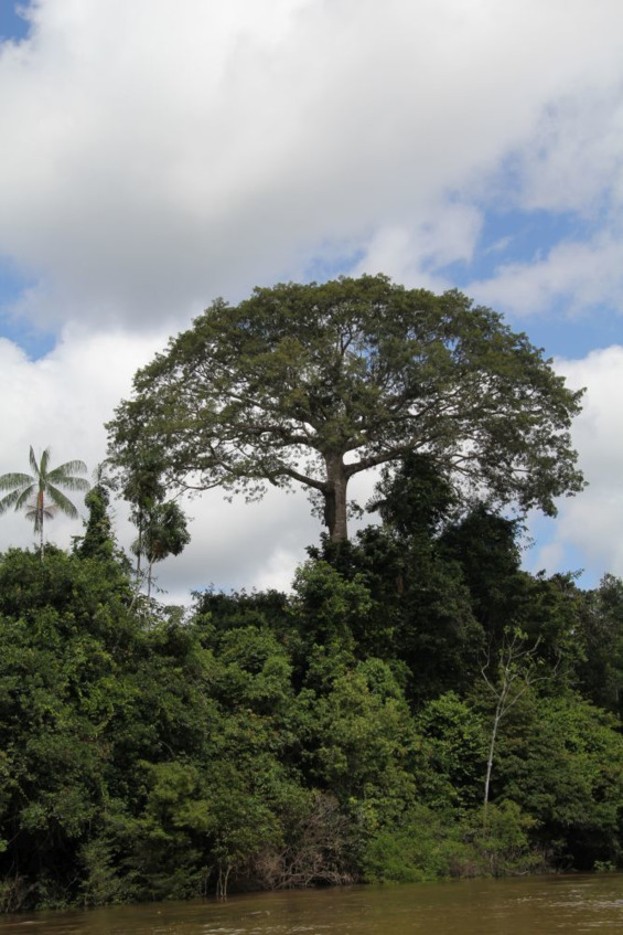 Несколько раз проплываем мимо огромных деревьев, раскинувших свою крону поверх тропического леса. Их ни с чем не перепутать – это сейба (Ceiba).