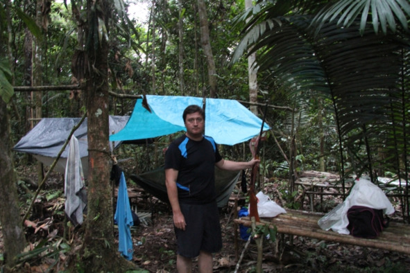 Заночевали в старом лагере мацес, разбитом посреди джунглей на берегу лесного ручья.