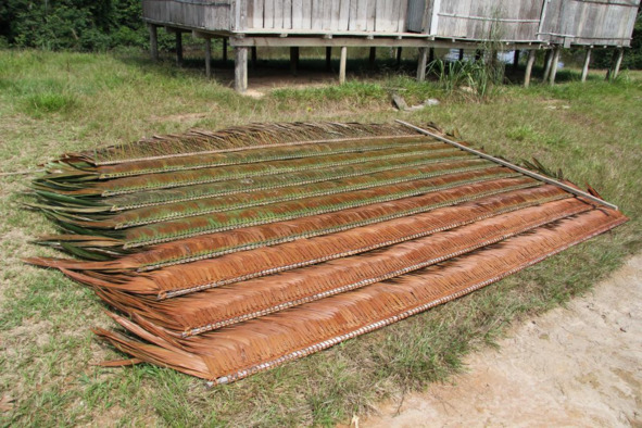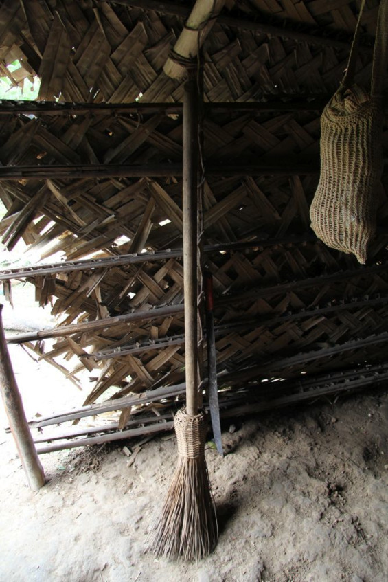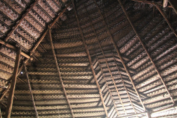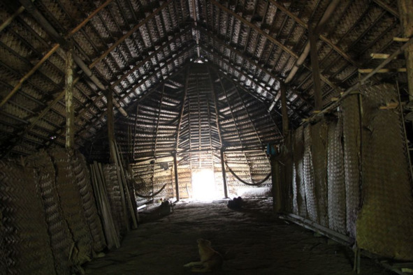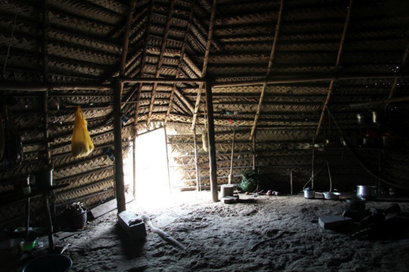 Внутри малоки между центральных опорных столбов и внешними продольными стенами располагаются семейные отсеки, в которых мацес развесили гамаки. В старой малоке они были открытыми, в новой – отсеки закрыли плетеными циновками, огораживающими их от центрального коридора и соседей.