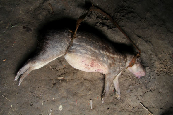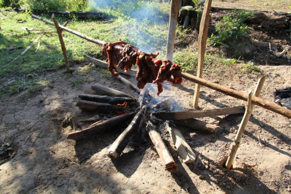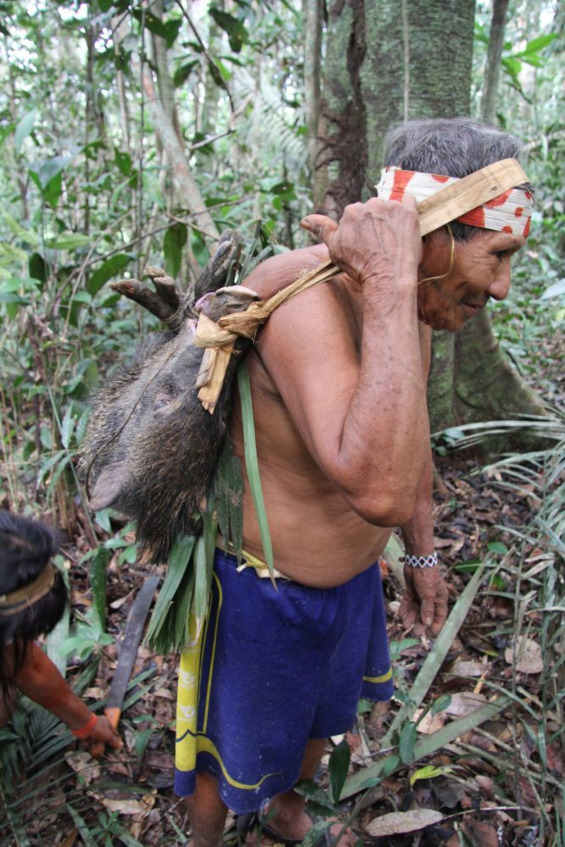 Туми (Сегундо) транспортирует добытого пекари в малоку