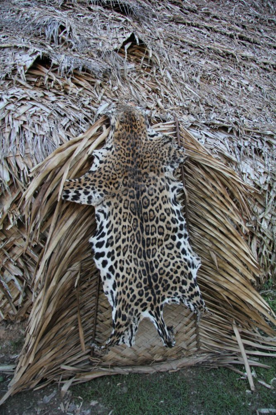 В полумраке малоки я не сразу разглядел, что за сверток заткнул Туми (Сегундо) за жерди каркаса коммунального общинного жилища. Приглядевшись, наконец понял, что это шкура ягуара. Оказалось, как-то рано утром старик пошел на чагру, его сопровождала одна из собак. Она заметила обезьяну и погналась за ней, вырвавшись вперед. Собака не успела нагнать обезьяну, потому что на нее неожиданно напал ягуар, мгновенно убивший питомца мацес. Туми (Сегундо) побежал в малоку за ружьем, быстро вернулся и застрелил хищника – на шкуре видны отверстия от дроби. Мацес не едят мясо ягуара, а вот шкуру зверя оставили. Если ее развернуть, она получается ростом с Туми (Сегундо) – ягуар был крупный. Как говорят мацес, в малоке остался жить сын той собаки.