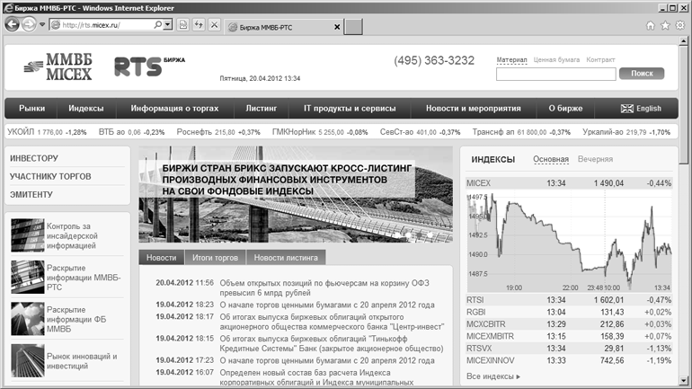 Рис. 5. Страница сервера ММВБ rts.misex.ru