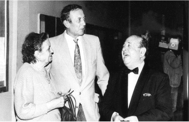 Михаил Александрович и Евгений Евтушенко с мамой Зинаидой Ермолаевной за кулисами Театра Эстрады в Москве. После концерта поэт оставил на память экспромт: