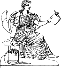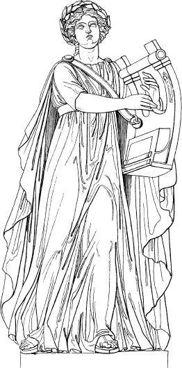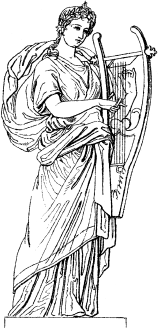 [Закрыть], – постоянные спутницы Аполлона. Он предводительствует хором муз и сопровождает их пение игрой на своей золотой кифаре. Величаво идет Аполлон впереди хора муз, увенчанный лавровым венком, за ним следуют все девять муз: Каллиопа – муза эпической поэзии, Эвтерпа – муза лирики, Эрато – муза любовных песен, Мельпомена – муза трагедии, Талия – муза комедии, Терпсихора – муза танцев, Клио – муза истории, Урания – муза астрономии и Полигимния – муза священных гимнов. Торжественно гремит их хор, и вся природа, как зачарованная, внимает их божественному пению.
