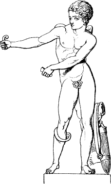 [Закрыть]. Светлый, радостный бог Аполлон знает и печаль, и его постигло горе. Он познал горе вскоре после победы над Пифоном. Когда Аполлон, гордый своей победой, стоял над сраженным его стрелами чудовищем, он увидел около себя юного бога любви Эрота, натягивающего свой золотой лук.