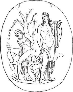 Лишь только сказала она это, как тотчас онемели ее члены. Кора покрыла ее нежное тело, волосы обратились в листву, а руки, поднятые к небу, превратились в ветви. Долго, печальный, стоял Аполлон пред лавром и наконец промолвил: