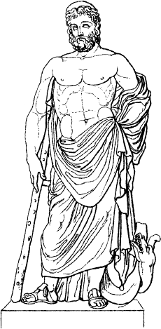 Асклепий (Эскулап). Но не только мстителем является Аполлон, не только гибель шлет он своими золотыми стрелами; он врачует болезни. Сын же Аполлона Асклепий – бог врачей и врачебного искусства. Мудрый кентавр Хирон воспитал Асклепия на склонах Пелиона. Под его руководством Асклепий стал таким искусным врачом, что превзошел даже своего учителя Хирона. Асклепий не только исцелял все болезни, но даже умерших возвращал к жизни. Этим прогневал он властителя царства умерших Аида и громовержца Зевса, так как нарушил закон и порядок, установленный Зевсом на земле. Разгневанный Зевс метнул свою молнию и поразил Асклепия. Но люди обожествили сына Аполлона как бога-целителя. Они воздвигли ему много святилищ, и среди них знаменитое святилище Асклепия в Эпидавре.