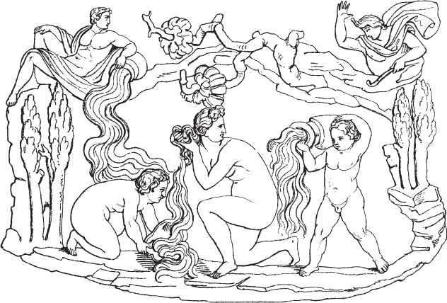 [Закрыть]. Однажды охотился Актеон со своими товарищами в лесах Киферона. Настал жаркий полдень. Утомленные охотники расположились на отдых в тени густого леса, а юный Актеон, отделившись от них, пошел искать прохлады в долинах Киферона. Вышел он в зеленую, цветущую долину Гаргафию[32]32