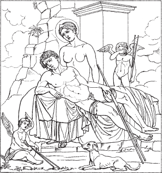 [Закрыть]. Но богиня любви, так покаравшая Нарцисса, знала и сама муки любви, и ей пришлось оплакивать любимого ею Адониса[53]53