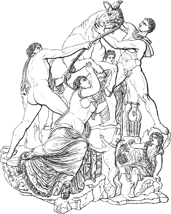 В ужас пришли Зет и Амфион, когда поняли, какое страшное злодеяние могли они совершить по вине жестокой Дирки. В гневе схватили они Дирку, оклеветавшую их мать, привязали ее к рогам дикого быка со словами: