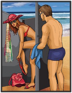 Если вы не совсем одни на пляже, кто-нибудь наблюдательный непременно найдется, всем же есть до других дело. Ну и что? Мало ли, видно четыре ноги снизу, мало ли, кабинка чуть покачивается. Кто сказал, что там люди занимаются сексом? Что за чушь, господа?!