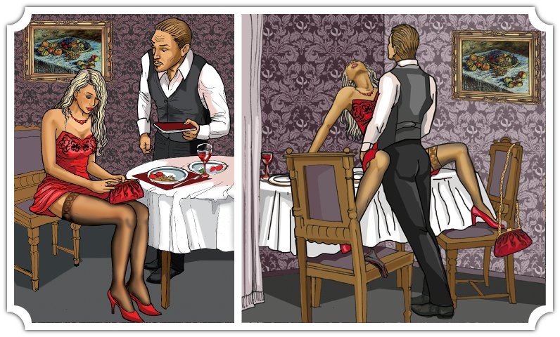 3. Женщина ведет себя с «официантом» чуть надменно, как с мальчиком, а тот заискивает и выслуживается, старайтесь поддерживать именно такой настрой по ходу всей игры, в том числе и в ее финальной части.