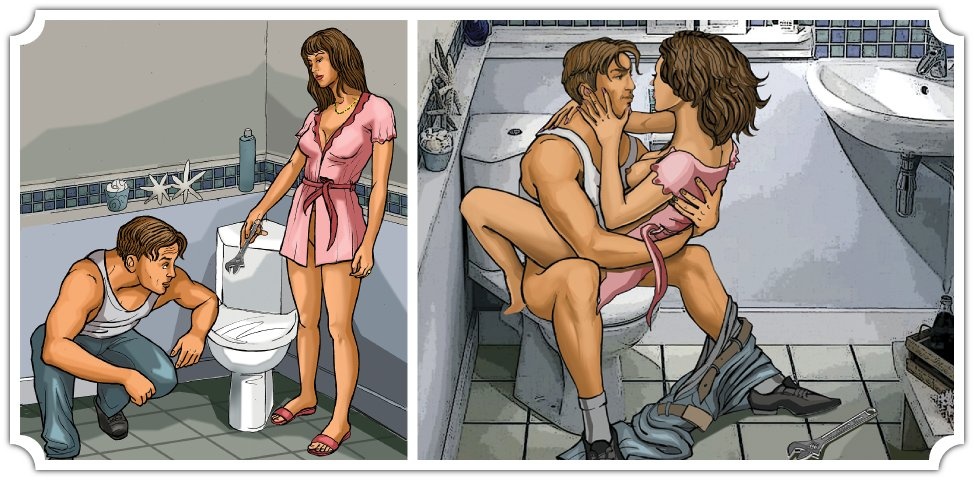 Игра № 17: Нахальный водопроводчик. Вызвав водопроводчика, расслабившаяся хозяйка встречает его в одном халатике. В ответ тот заводится и грубо трахает ее