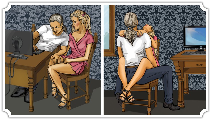 2. Вся «соль» этой игры заключается в том, что «компьютерщик» постепенно убалтывает клиентку, поэтому мужчине не следует торопить события.