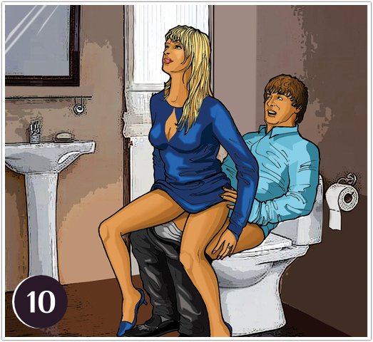 Ну и теперь, классика жанра – секс на унитазе, если ваша ванная комната совмещена с туалетом. Унитаз при этом не должен быть подвесным, а вы сами – слишком тяжелыми, особенно, если сидите на опущенной крышке. Помните, она запросто может хрупнуть, если вы станете через чур активными. Унитаз, это все-таки не кресло. В остальном это идеальная поза для любительниц «оседлать жеребца». Меняя наклон туловища, раскачиваясь, приподнимаясь, приседая и ерзая, женщина может играть ощущениями. Здесь она правит балом, мужчина лишь старается не кончить раньше времени.