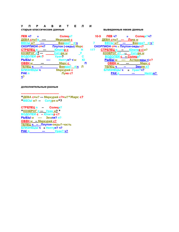 |) существует столбик планид из букв по цвету стихии, считающимися вторыми управителями знака.