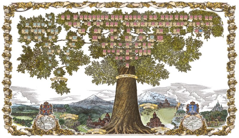 Генеалогическое древо Нами Микоян, в которое вошли род Геурковых по линии отца, а по линии матери – рода Вацадзе и Христич и древний род Приклонских, берущий начало в XV веке. Из этого рода вышли Веневитиновы, связанные родством с Пушкиными и Гоголями.