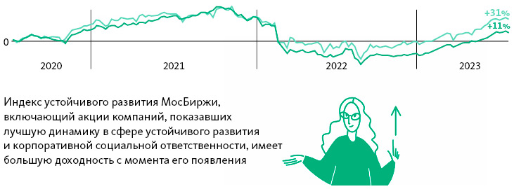 Например, доходность индекса «РСХБ – Индекс МосБиржи – РСПП Вектор устойчивого развития, полной доходности, брутто (ESGR)»[69]69