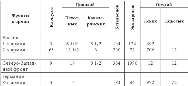 Соотношение сил в операциях в Восточной Пруссии видно из таблицы: