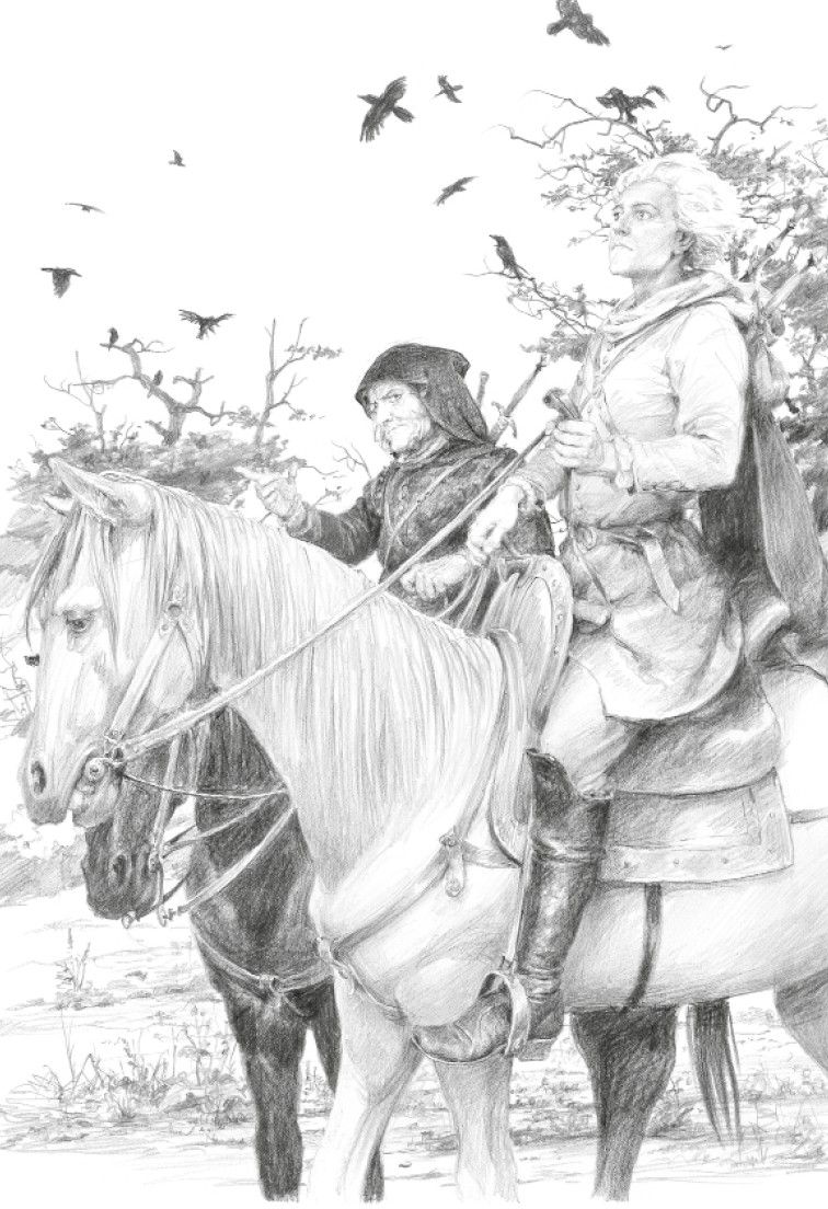 Вороны уселись на самые верхние ветви деревьев. Каркали, присматриваясь к всадникам.