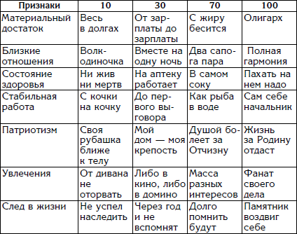 За основу теста мы возьмем признаки достойной жизни, обозначенные выше: