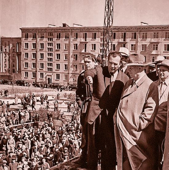 Н. Хрущёв осматривает строящиеся кварталы Щемиловки. 23 мая 1957