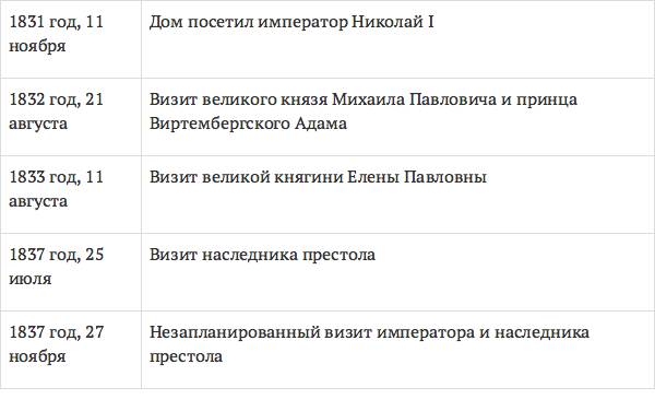 С 1831 по 1833 год Дом удостоился нескольких визитов августейшей семьи.