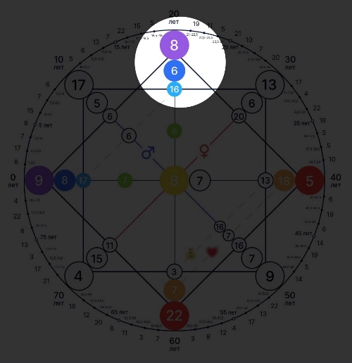 "Рассчитывается путем сложения соседних энергий. При расчете двигаемся по часовой стрелке от дня рождения.