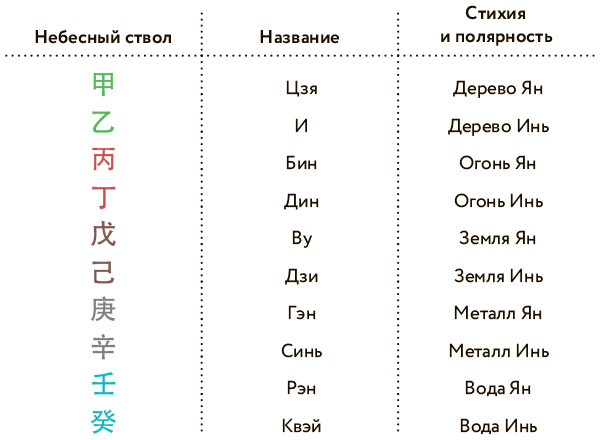 Вспомним, что Небесные стволы – это пять стихий, представленные в двух полярностях. Давайте назовем их.