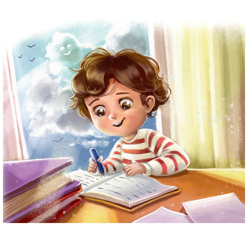 Антоша ничего толком не разобрал из сложной папиной речи и вернулся в комнату. Уставился в окно и долго, бесцельно смотрел в одну точку. Вдруг он начал замечать, что облака, если присмотреться, меняют форму и очертания. И то, которое было похоже на слона, незаметно превратилось в крылатого дракона. Потом он различил, как красиво поют за окном птицы. Просто так! Поют себе и поют, не скучают. Увидел, как два голубя взмыли вверх и, словно танцуя, закружились в воздушных потоках…